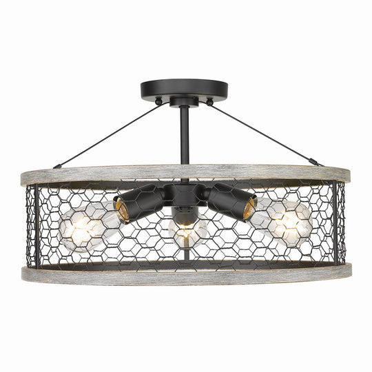 Teagan Three Light Semi-Flush Mount in Natural Black