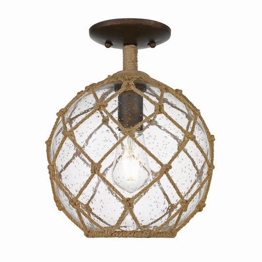 Haddoc has the look of a reclaimed sea treasure, brought home and revamped. The large, round, seeded glass is reminiscent of an iridescent bubble magically snared by a net. Enhancing the nautical-inspired design, knotted rope and...Regular price $157.00