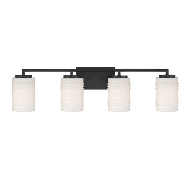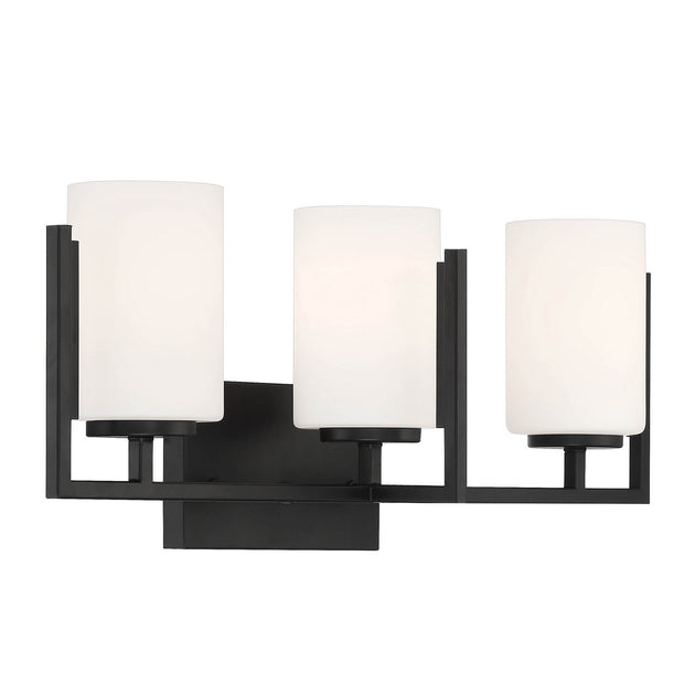 Regular price $0.00Straight lines and cylindrical shades evoke Modern art and architecture in Designers Fountain's Cambria bath and vanity collection. The Matte Black finish contrasts nicely with the Etched Opal Glass shades. Made from durable steel for years... -