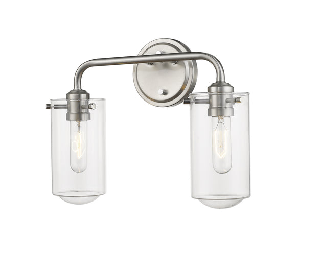 Regular price $120.00Blend artistic style with an industrial flavor to bring classic good looks to a transitional space. This brushed nickel two-light wall sconce brightens any room or hallway as it adds a radiant flavor. -