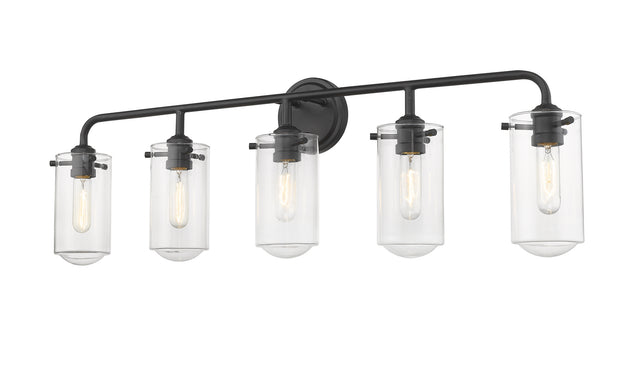 Regular price $234.00Make design work in your favor as you frame a master or guest bath suite sink. With delicate clear glass bulbs and a sleek matte black finish frame, this five-light bath light offers a tasteful, charming... -