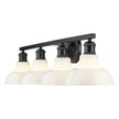 The Yep by Golden Lighting Carver 4-light Vanity combines modern elegance with a matte black finish and a vintage milk glass shade, creating soft ambient lighting that elevates bathrooms.