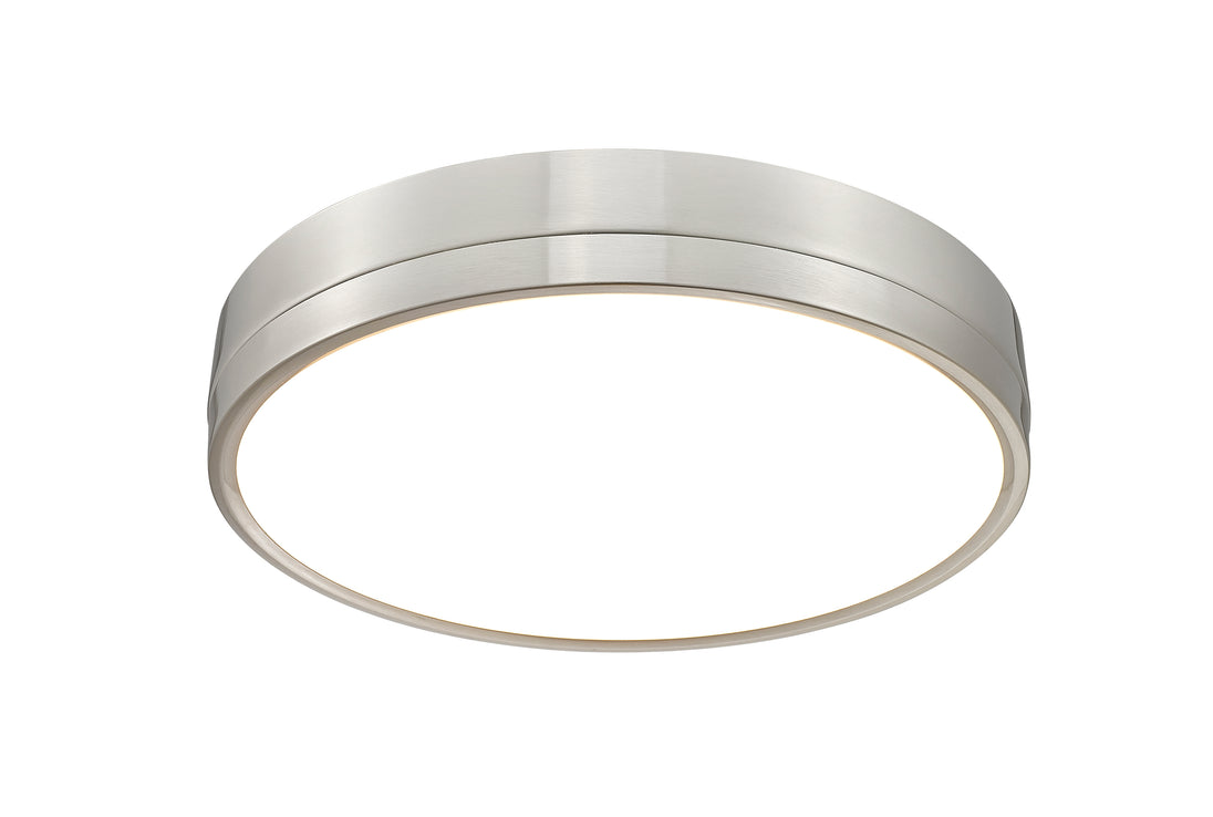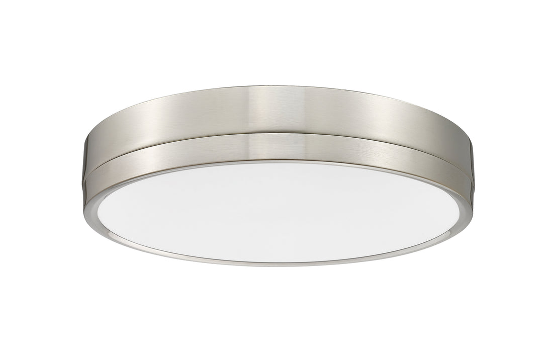 Classic with a touch of retro inspiration, the design of this one-light flush mount ceiling light is versatile for placement in kitchens, entryways, and living spaces. A sleek brushed nickel finish steel canopy nestles a frosted acrylic diffuser filtering dimmable LEDs that offer options for white color levels create a total package.