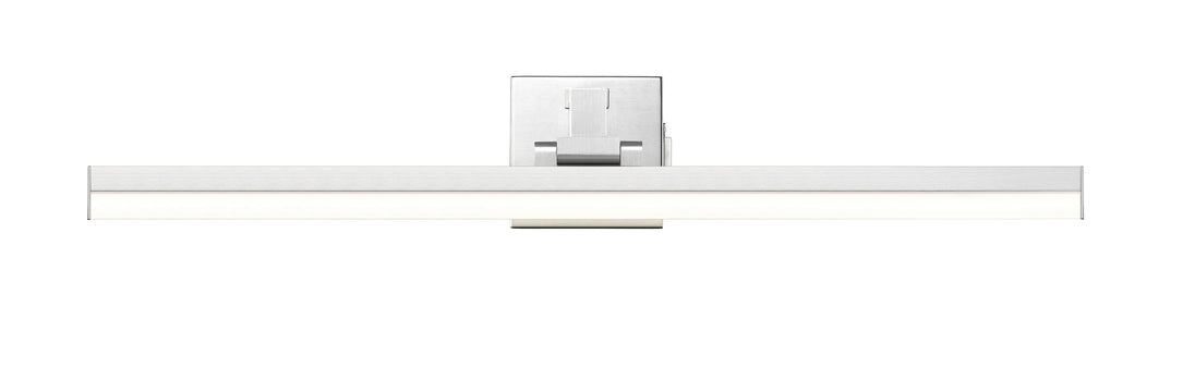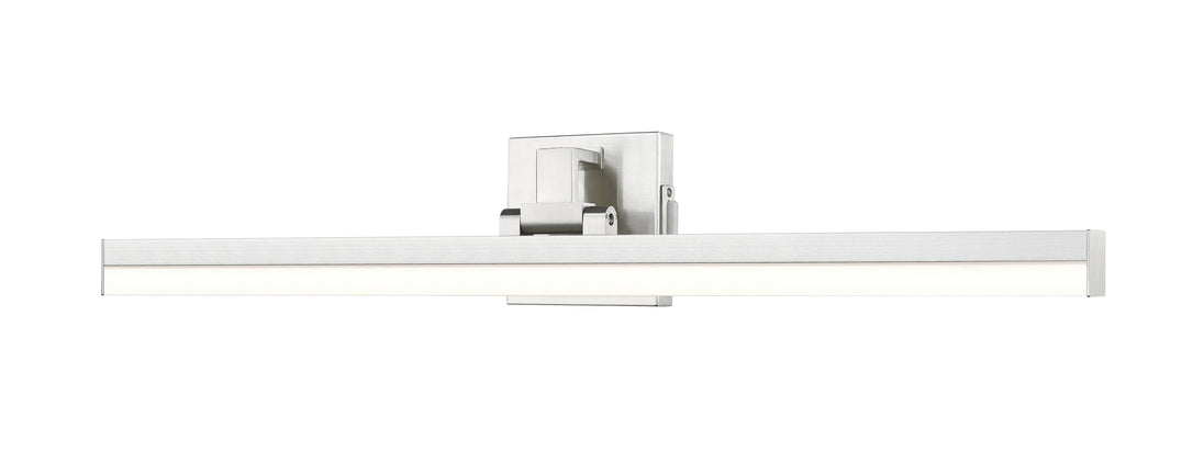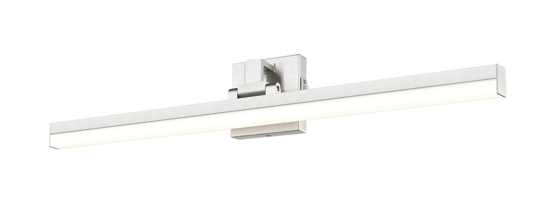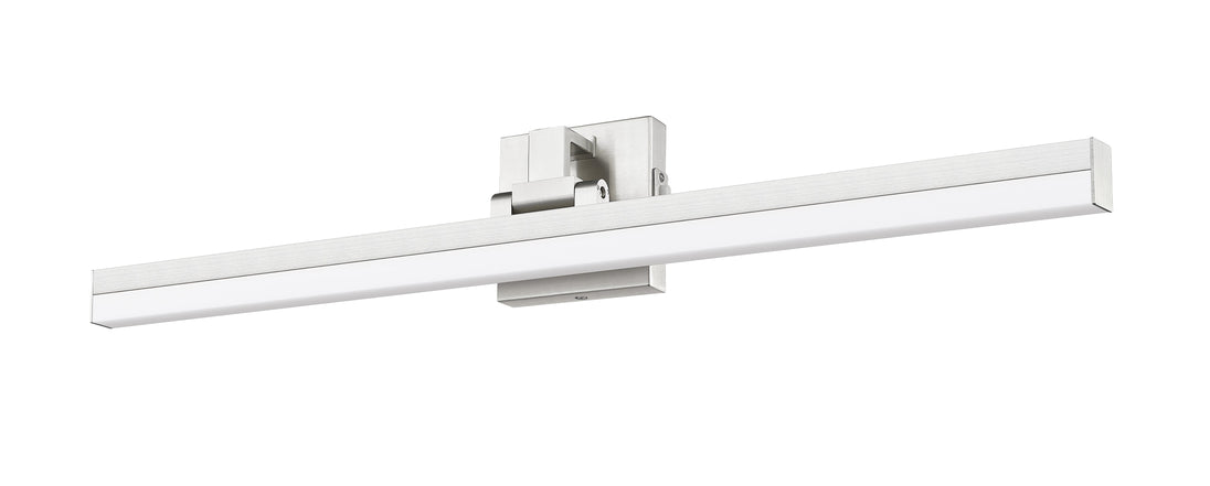 Modern and transitional aspects create a mixed motif in an elegant one-light vanity light, perfect for an array of bath spaces. Sculptural elements maintain symmetry and clean lines in a fixture fashioned of cool brushed nickel finish aluminum with a frosted plastic diffuser, emitting dimmable lighting with options for perfecting the level of ideal white color.