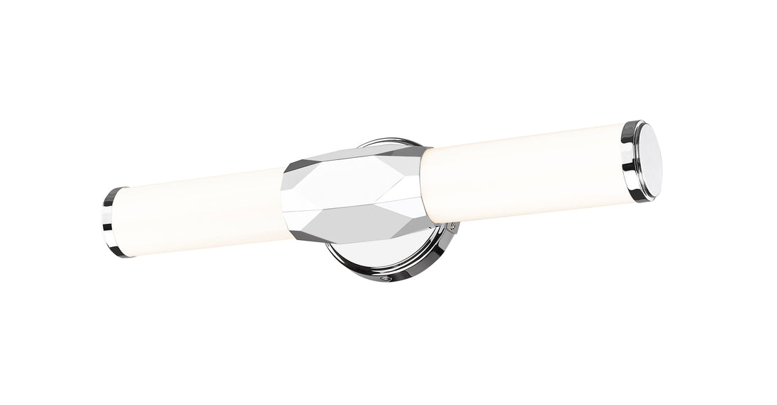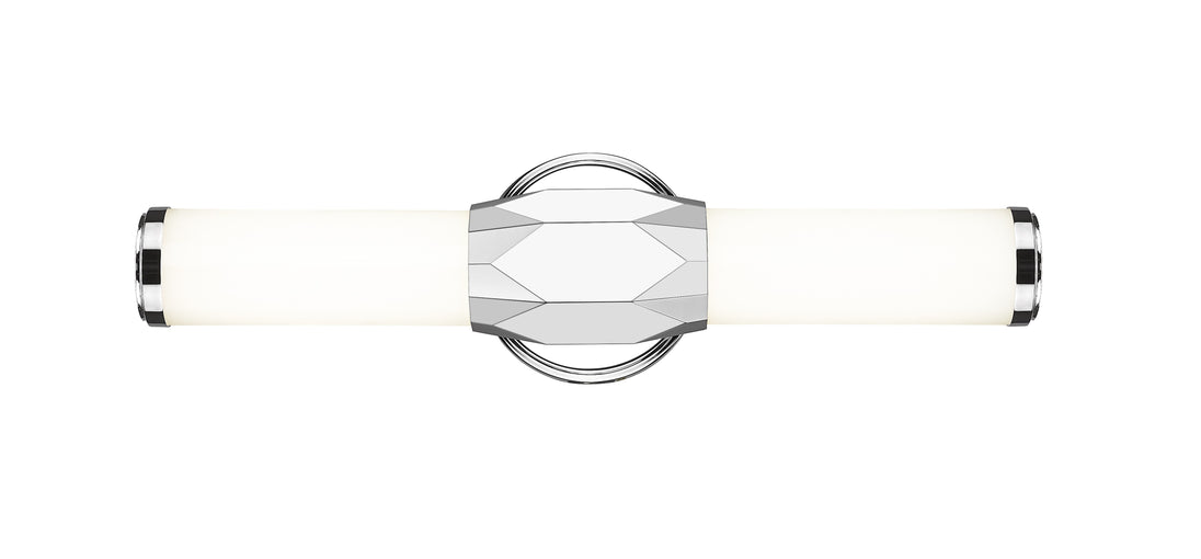Introduce Art Deco attitude to an elegant one-light vanity light bridging motifs between transitional and modern. Aluminum framing with a brilliant chrome finish includes end caps and a prism-inspired holder, embellishing the rich geometric and complete package of a light fixture with optional color temperature values.