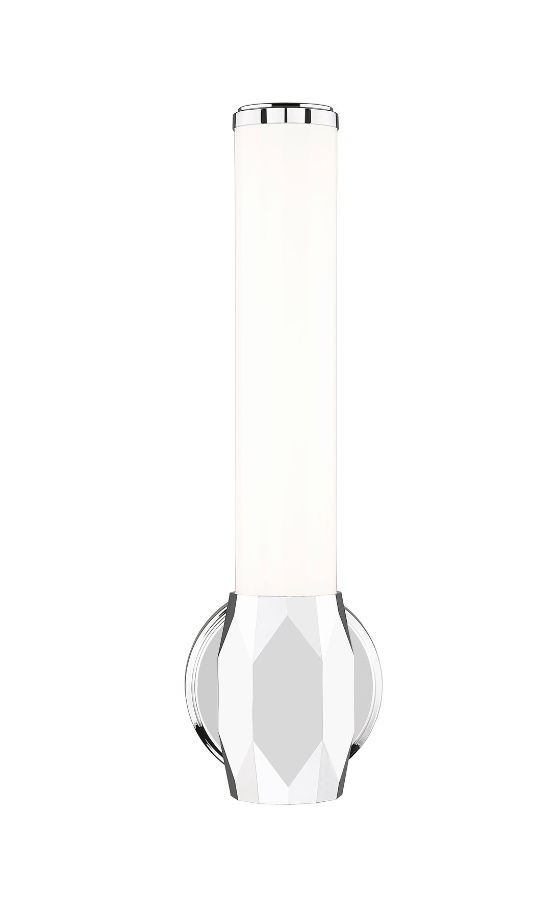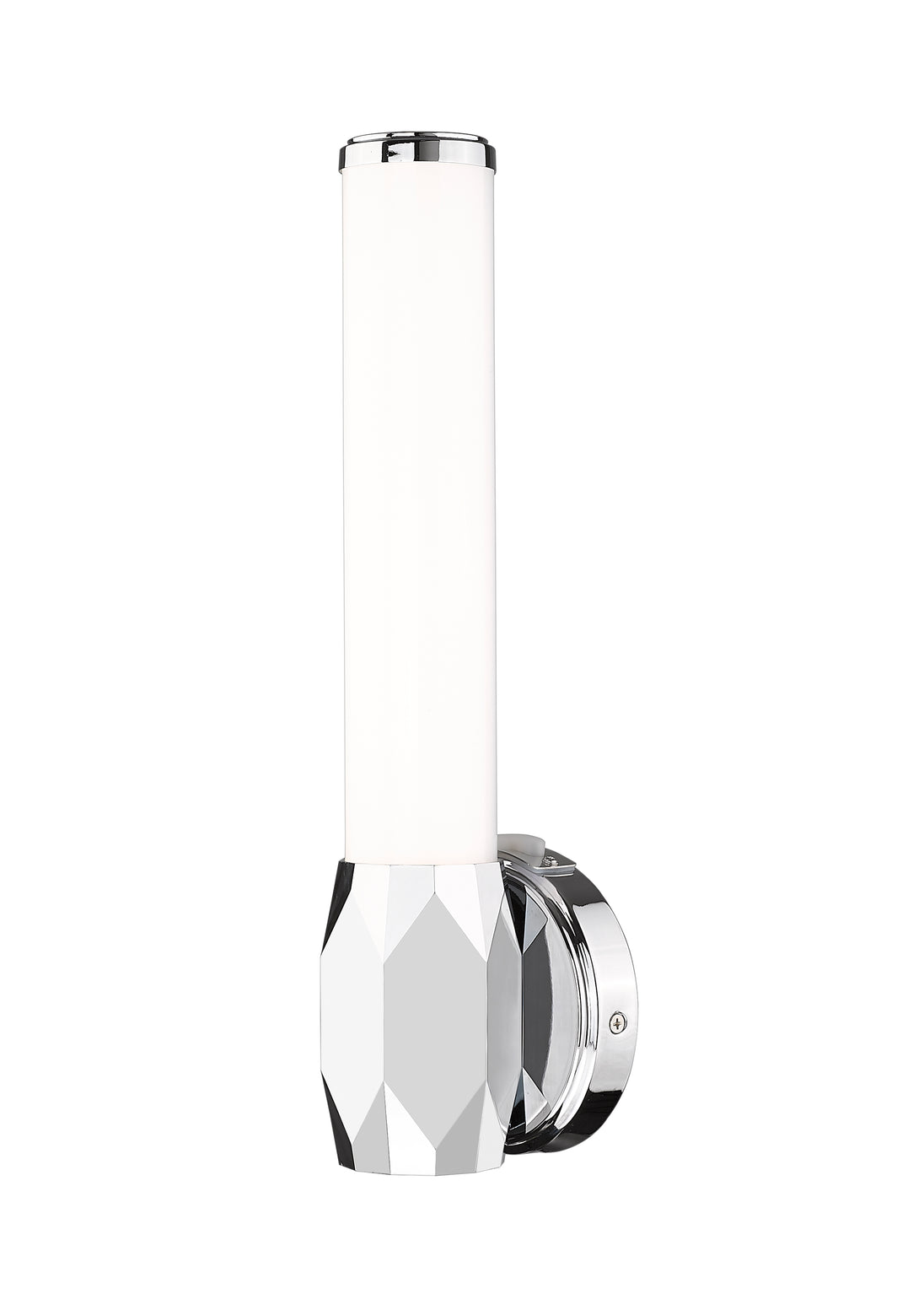 Brilliant finish effects sharpen the aesthetic of a one-light wall sconce, creating a low-key yet high-impact mix. With a brilliant chrome finish aluminum frame including diffuser end caps and a prism-inspired center holder, its Art Deco influence shows through to soften any living space.