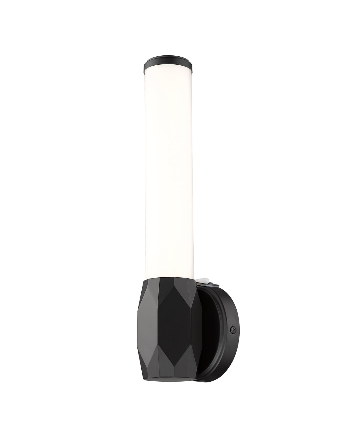 Weaving color/finish contrast into an artisan design, this vertical one-light wall sconce is a superb choice for both modern and transitional spaces. With a bold matte black finish aluminum frame including diffuser end caps and a prism-inspired center holder, its Art Deco influence shows through to embellish any living space.