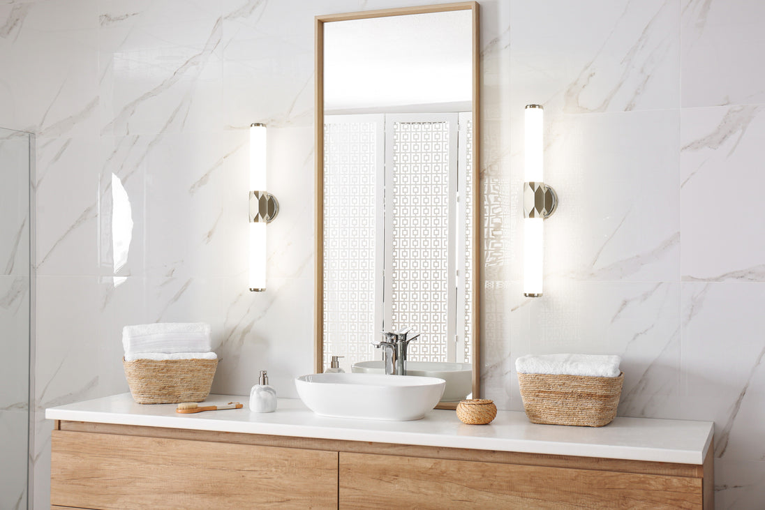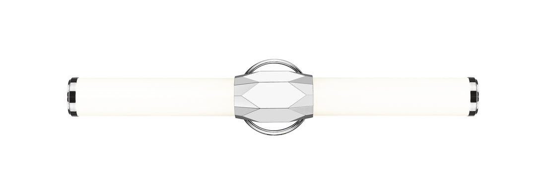 A brilliantly finished frame and stylish accents bring life to a one-light vanity perfect for a host of bath or living spaces. Aluminum framing with a chrome finish includes end caps and a prism-inspired holder, furthering the rich geometric and complete package of a light fixture with optional color temperature values.