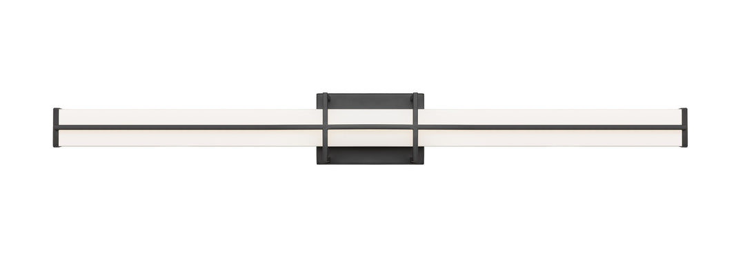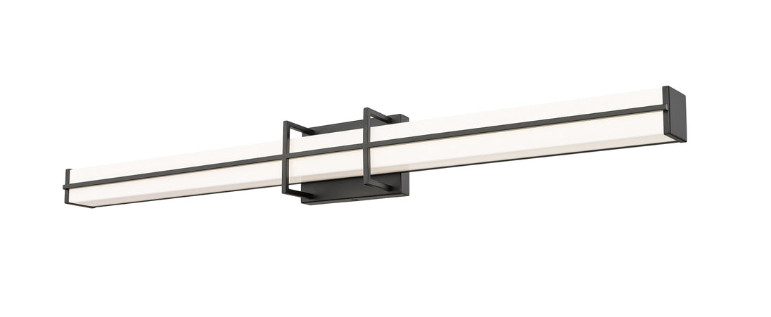 A charming bracket pairs vertical and horizontal elements to create a chic presentation for a modern linear vanity light. Its energy efficient LEDs are dimmable, with selectable color temperature for just the right ambiance. A cool matte black finish completes the framework of this fixture, while a frosted diffuser ensures soft, bright ambient illumination that's ideal for daily grooming and beauty tasks.