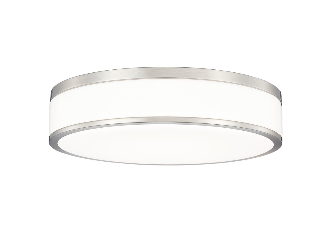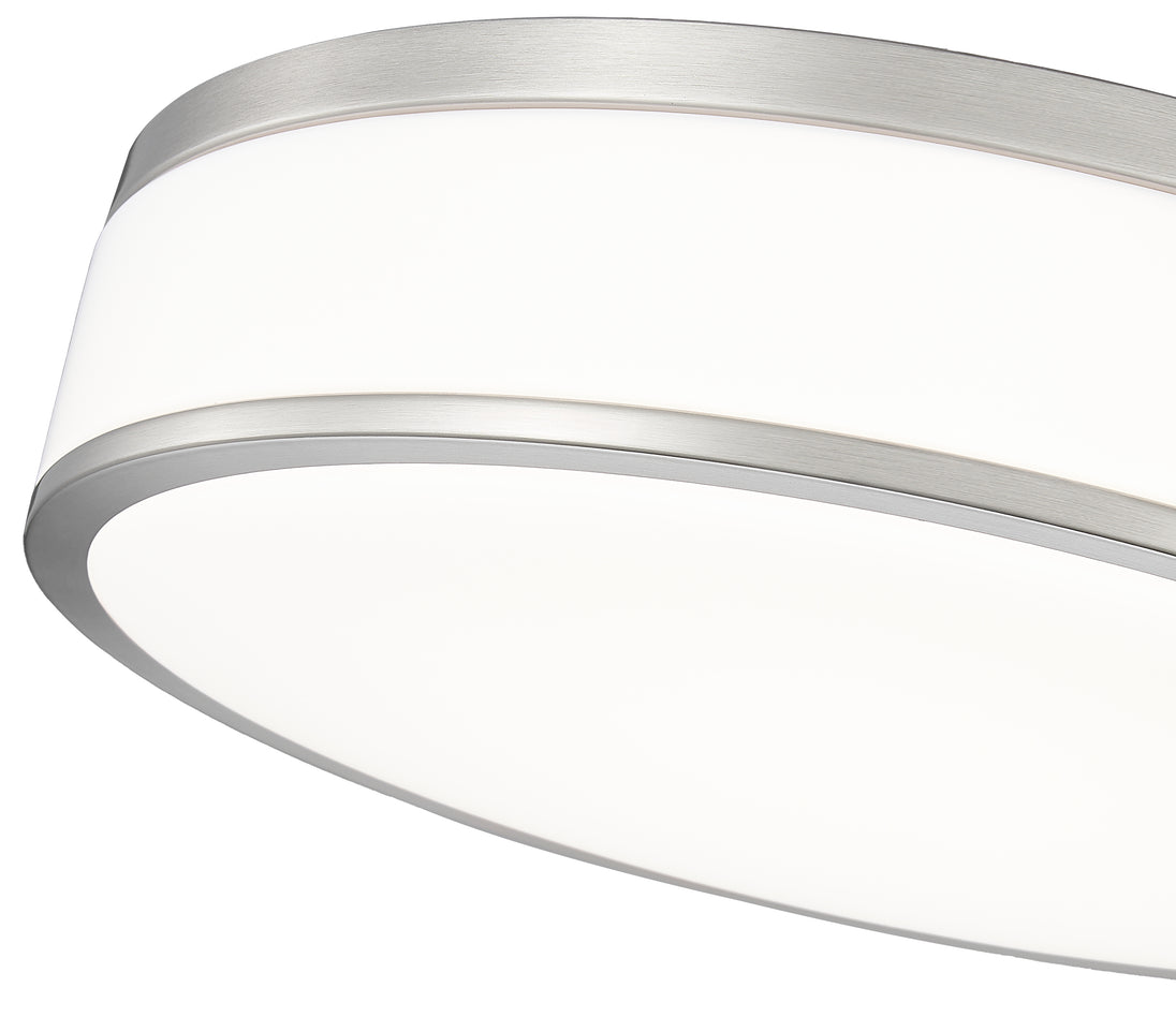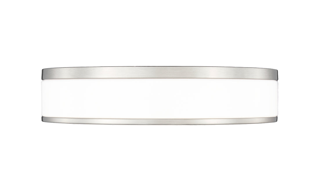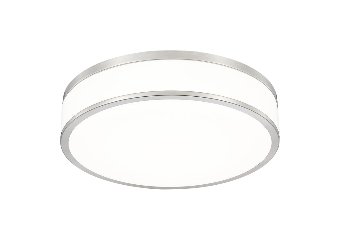 Fashion forward brushed nickel sets the tone for a refined modern one-light flush mount ceiling light. Bands of brushed nickel finish steel create a sleek frame, while frosted acrylic diffusers ensure soft, inviting lighting for your bedroom, den, or living room seating group. This LED fixture is an energy efficient choice for your home.