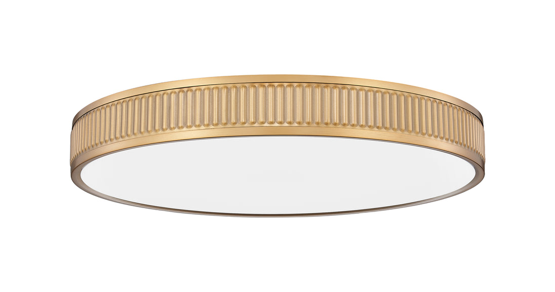 Dimmable and energy saving, this modern flush mount LED ceiling light creates soft, inviting illumination in your hall, bedroom, or living area. It shows off a distinctive ribbed pattern that adds a touch of movement, while a modern gold finish instantly elevates the overall look of the fixture. Its complete with a frosted acrylic diffuser that ensures inviting illumination for every occasion.
