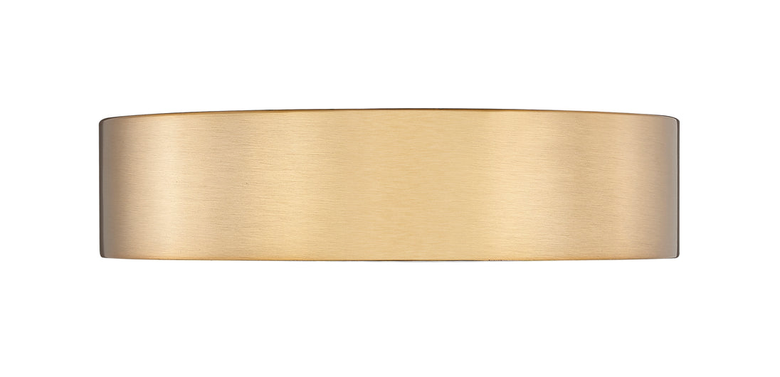 Modern gold finishing turns this modern one-light flush mount ceiling light into a spectacular decorative addition to your space. It's warm and rich, offering elegance to the integrated LEDs that provide energy efficient illumination for your bedroom, den, or living room.