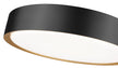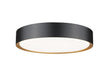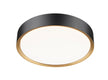 The refined style infuses a modern one-light flush mount ceiling light. Perfect for your bedroom or home office, it delivers timeless quality with a steel frame and a two-tone finish that pairs a matte black exterior ring with a modern gold interior, adding alluring warmth.