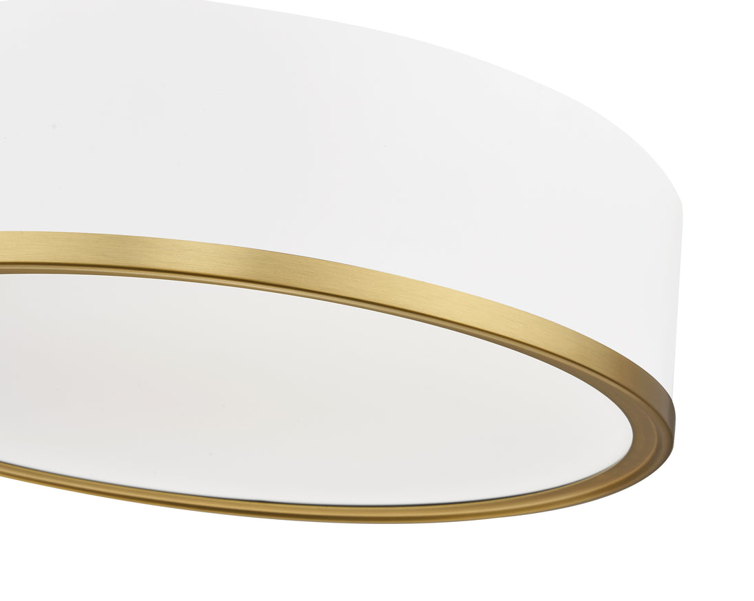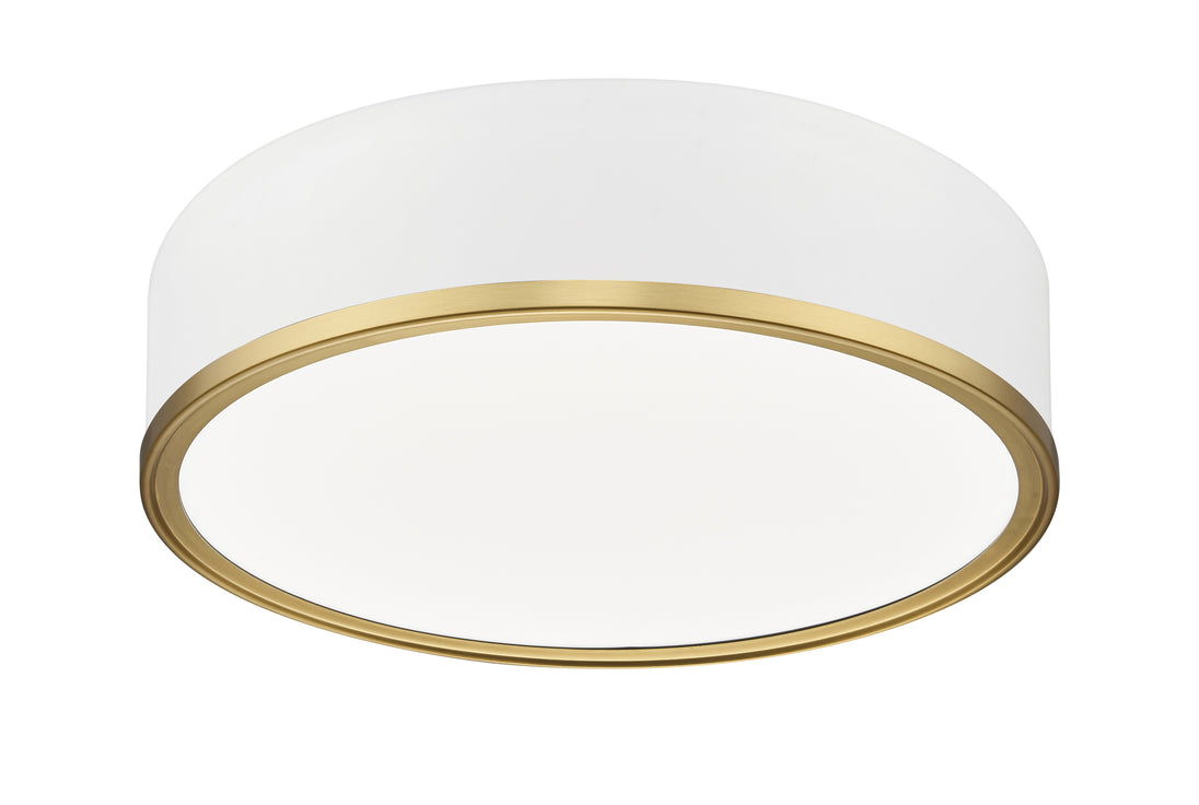 Modern gold finish banding highlights the cool matte white finish featured on this contemporary flush mount LED ceiling light. Energy efficient and sleek in design, it lends a halo-like effect over halls, bedrooms, and living spaces. The integrated LED is energy efficient and color selectable to ensure the perfect ambiance for every occasion.