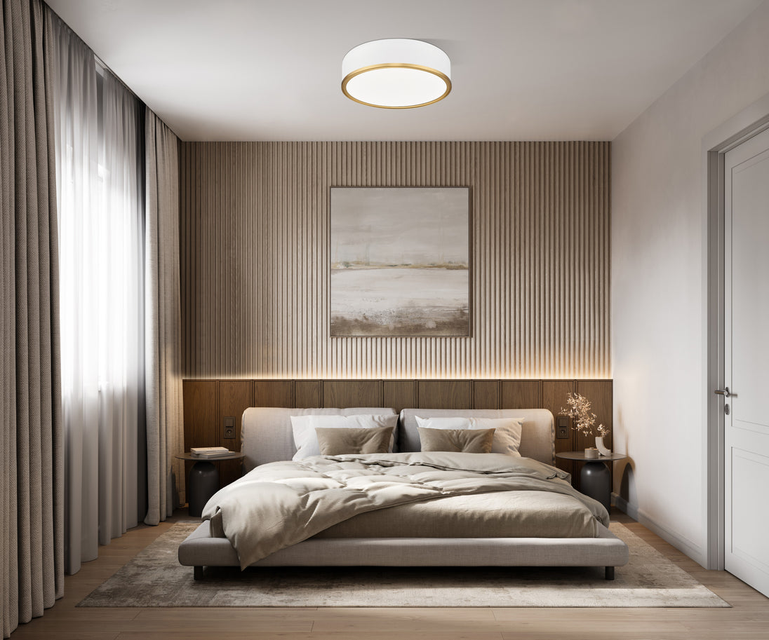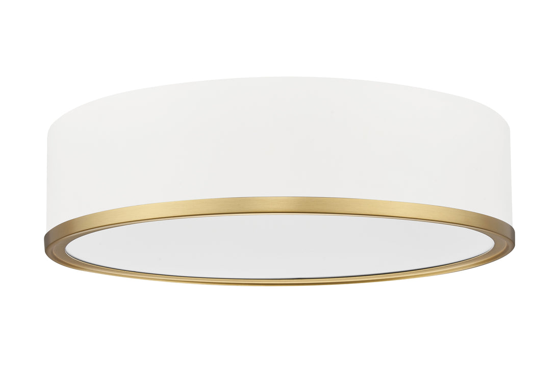 A handsome bottom band adds elegance to the Bradley flush-mounts. These fixtures are equipped with the latest energy saving LED Technology, dimmable, light color selectable (5 choices), 5-year warranty (LED component), and the Z-Lite LED EZ change module. Available in three sizes plus a finish choice of White with a Modern Gold band and Black with a Modern Gold band.
