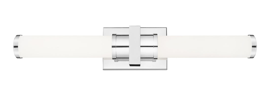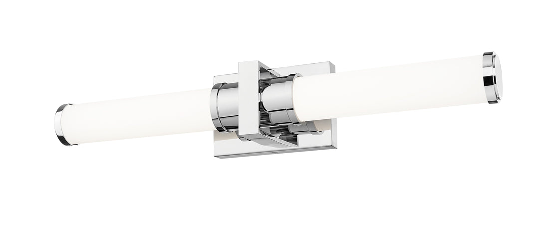 Stylish, gleaming chrome is versatile and clean on this modern LED vanity bath light. It’s the perfect complement to contemporary decor, offering bright, diffused illumination with an integrated, dimmable LED and a pair of opal glass shades that cast a glare-free glow across your space.