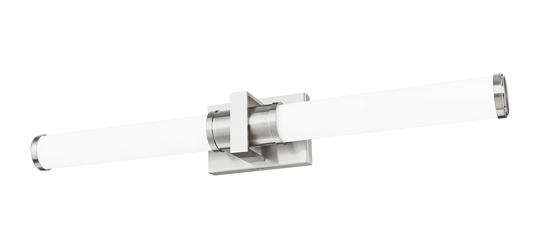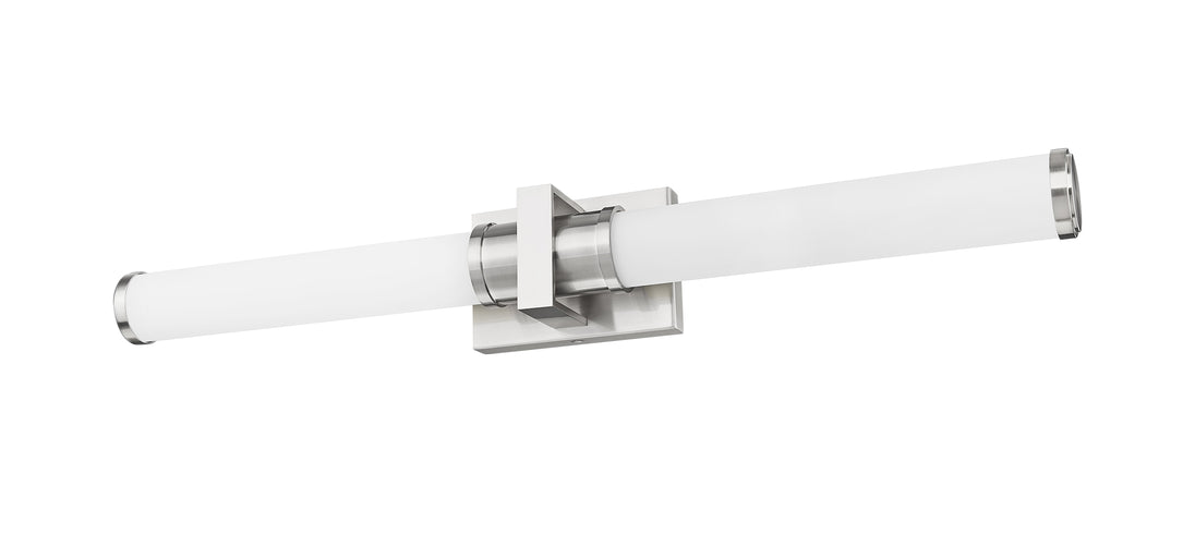 Emphasize modern sophistication with this contemporary LED vanity bath light. It boasts a chic brushed nickel finish that complements in any space, and is complete with a decorative cuff and opal glass shades that cast soft lighting. The fixture is complete with a dimmable, integrated LED light source, offering selectable light color to create just the right aura in your primary or guest en suite.