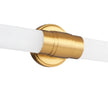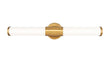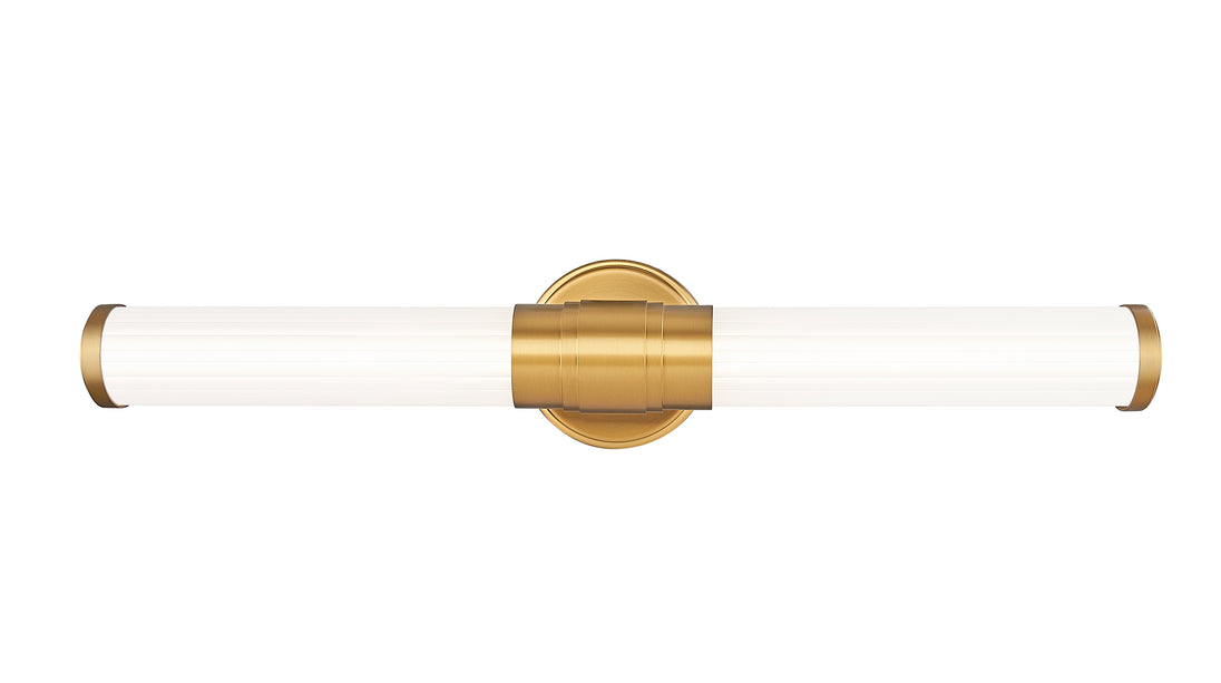Highlight a refined space with the modern gold finish featured on this contemporary LED vanity bath light. Great for a primary or guest en suite, it offers a linear silhouette complete with a stepped collar and two cylindrical opal glass shades that are ribbed to create dimensionality. The fixture is complete with an energy efficient LED that's both dimmable and color selectable.