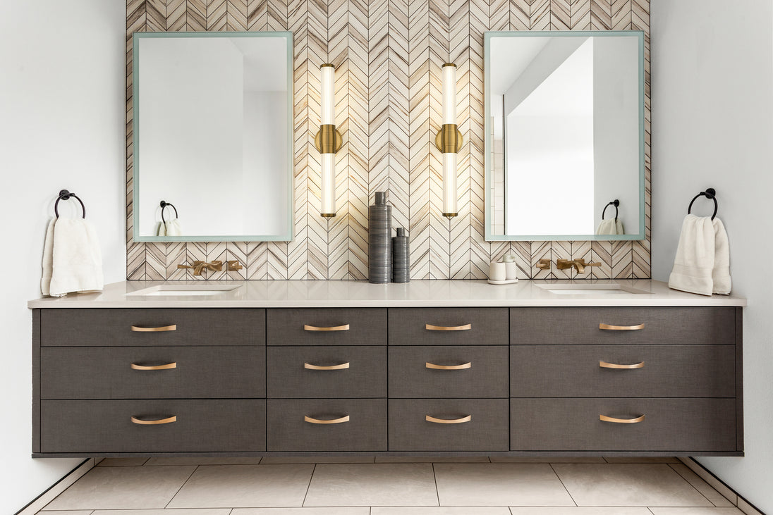 Slender ribbed glass diffusers and a stepped design on the metal arm bring a modern flair to the Warwick bath collection. These fixtures are equipped with the latest energy-saving LED technology, dimmable, light color selectable (5 choices), and a 5-year warranty (LED component). Decorative, detailed metal end caps in the same finish – a choice of Matte Black, Brushed Nickel, Chrome, and Modern Gold – complete the look. Available sizes include 18”, 25”, 32” and 40”, as well as a 16” tall sconce to suit a variety of applications.