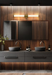 Slender ribbed glass diffusers and a stepped design on the metal arm bring a modern flair to the Warwick bath collection. These fixtures are equipped with the latest energy-saving LED technology, dimmable, light color selectable (5 choices), and a 5-year warranty (LED component). Decorative, detailed metal end caps in the same finish – a choice of Matte Black, Brushed Nickel, Chrome, and Modern Gold – complete the look. Available sizes include 18”, 25”, 32” and 40”, as well as a 16” tall sconce to suit a variety of applications.