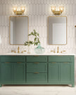Evoking the look of sunlight dancing on waves, the textured surface on the Analia vanity series' handblown glass shades underscores the spa-like feeling. Available in 1- to 5-light versions and a choice of Brushed Nickel, Chrome, Matte Black, or Modern Gold finishes.