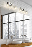 Evoking the look of sunlight dancing on waves, the textured surface on the Analia vanity series' handblown glass shades underscores the spa-like feeling. Available in 1- to 5-light versions and a choice of Brushed Nickel, Chrome, Matte Black, or Modern Gold finishes.