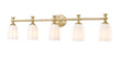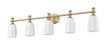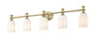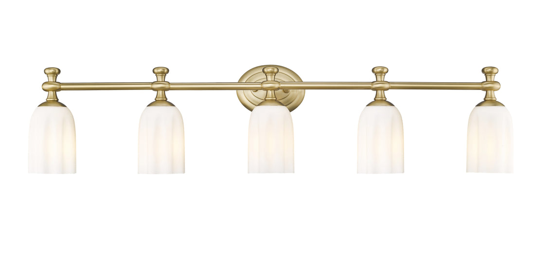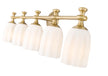 Refinement is the watchword of a modern five-light vanity fixture. Designed for the Orion collection, it emphasizes elegant romanticism with delicately scalloped details on opal etched glass shades and decorative flourishes perched above. Its modern gold finish adds the right touch of warmth and sophistication, perfect for a gorgeous bathroom remodel.