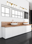 The Orion vanity series is enhanced by a flourish at the top of each frosted glass shade that brings a delicate design sensibility. Orion can be ordered in a choice of Brushed Nickel, Matte Black, Chrome, and Modern Gold finishes.