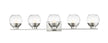 Make this five-light vanity fixture a marquee element of a custom master bath design. Romantic and artistic, its orb-shaped delicate glass shades blend with sleek brushed nickel finish steel to offer a compelling look as well as energy-saving integrated LED technology.