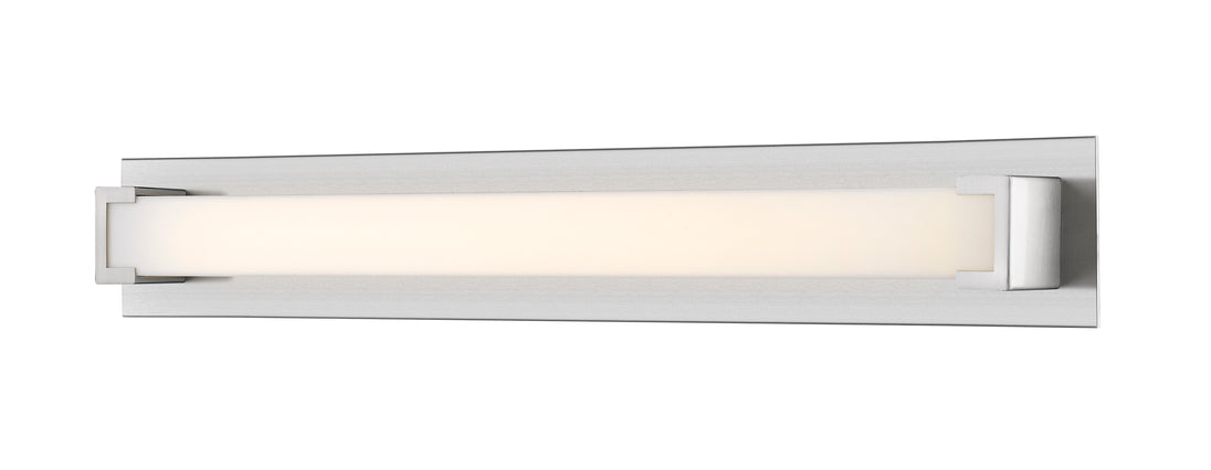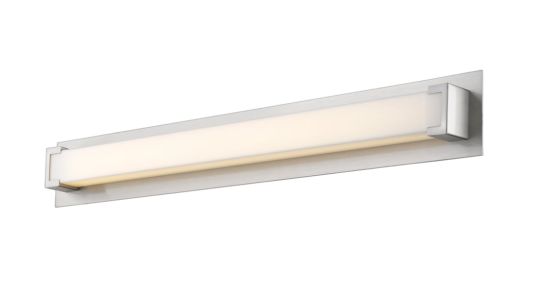 Modern style with a hint of mid-century appeal? It's here with this brushed nickel finish one-light vanity, which offers energy-saving LED technology as well as fully integrated LED technology for extra convenience.