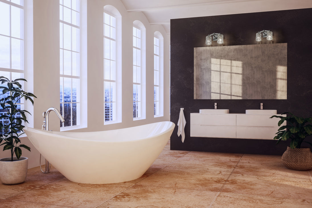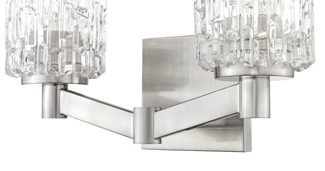 The Aubrey Collection of Bath fixtures pairs its crystal designed glass shades with its graceful arm structure to achieve its stunning appearance. The look is finished in either Chrome or Brushed Nickle, to complement any of today’s bathroom designs.