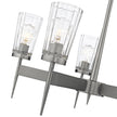 Flair demonstrates elegance in its meticulously designed silhouette. Exquisitely flared glass shades sit upon an extended stem, creating an impression of balance and simplicity. The Polished Antique Nickel finish highlights the sleek hand-welded steel frame, making Flair a striking statement to any room.