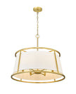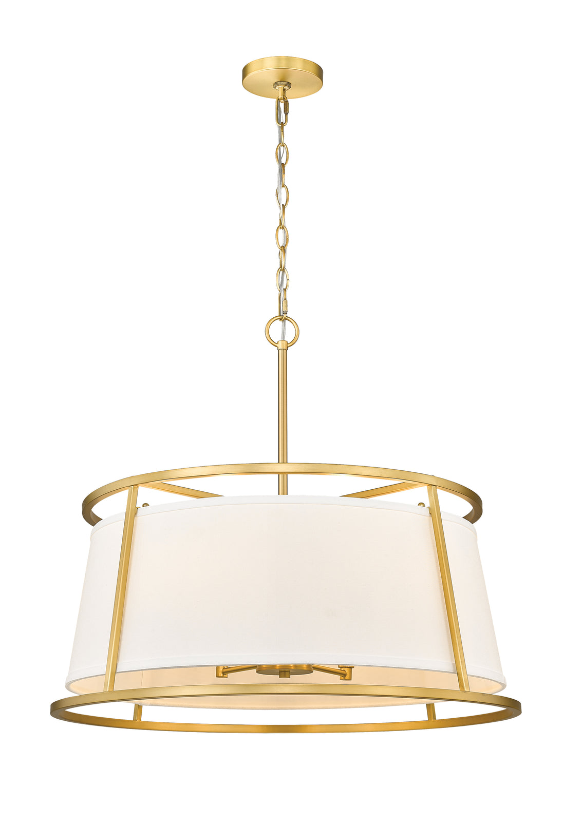 Light and elegant style blend to create a motif with impressive ambiance perfect for a modern living room, dining space, or entryway. Embrace the Lenyx six-light pendant and its rubbed brass finish openwork steel frame offering full view of a classic white linen shade that keeps to a more conventional look with familiarity.