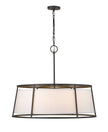 The Lenyx Pendant creates a statement in spaces both big and small. Elegant lines surrounding a white linen shade make Lenyx the perfect choice in any room. Offered in two sizes, and two finishes, brushed nickel with white linen, or iron ore with white linen.