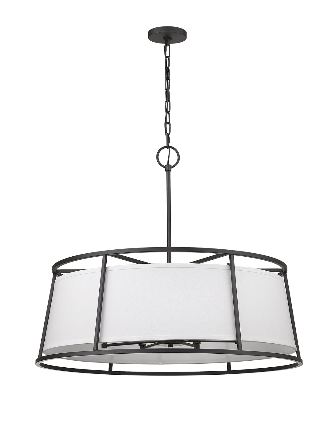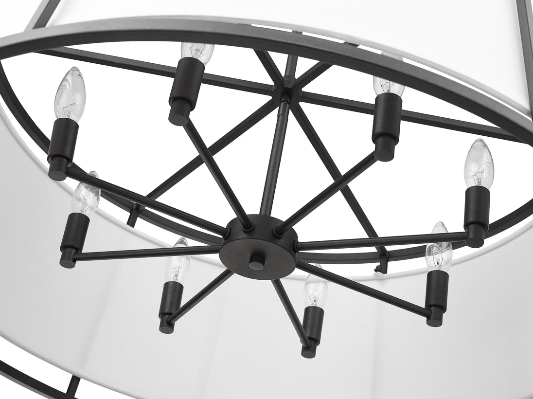 Illuminate your living space with the alluring glow of this elegant, eight-light pendant. With a versatile design that works well in almost any room, this sophisticated fixture blends an iron ore finish frame with a soft, white shade for beautiful ambiance.