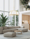 Compelling classic style with impressive ambiance reflects a fixture perfect for a modern living room, dining space, or entryway. The Lenyx eight-light pendant embraces an openwork metal frame offering full view of a classic white linen shade that keeps to a more conventional look with familiarity.
