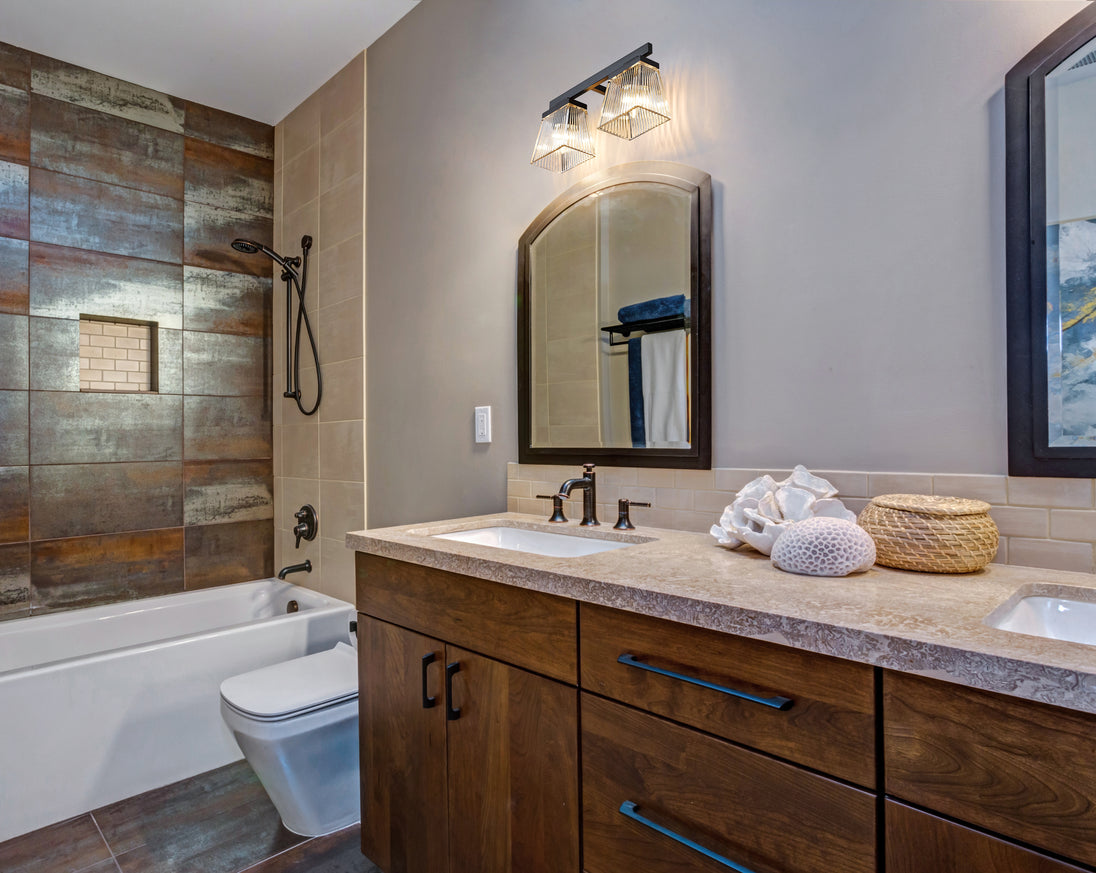 Modern and sleek, the Astor Collection of vanity fixtures can enhance a myriad of designs from industrial to Modern Farmhouse, depending on the glass style (smooth opal or ribbed crystal) and finish (Matte Black, Chrome, or Brushed Nickel) selected.