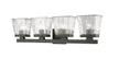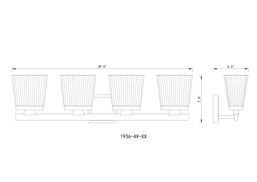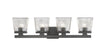 This four-light vanity light in matte black is the perfect piece for your modern farmhouse bathroom or hallway. Clear glass shades with a ribbed texture adds visual interest to the silhouette.