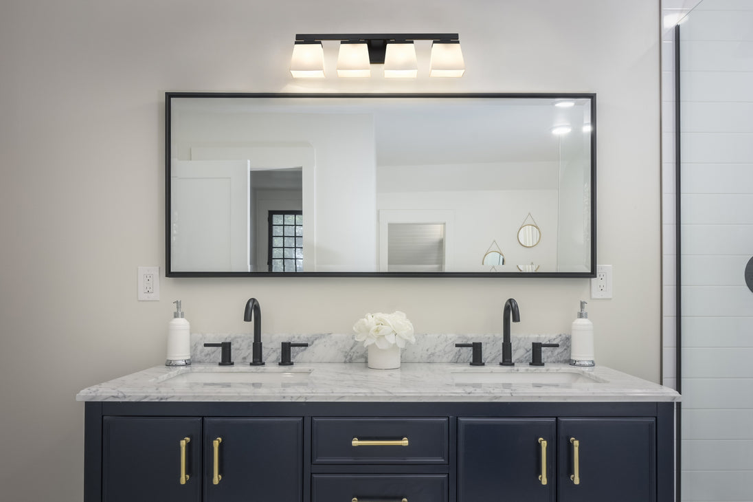A four-light vanity light is ideal for adding a touch of modern farmhouse to contemporary spaces. The simple yet classic design, paired with versatile style, makes it a perfect choice for bathrooms and hallways. The matte black finish perfectly complements your decor.