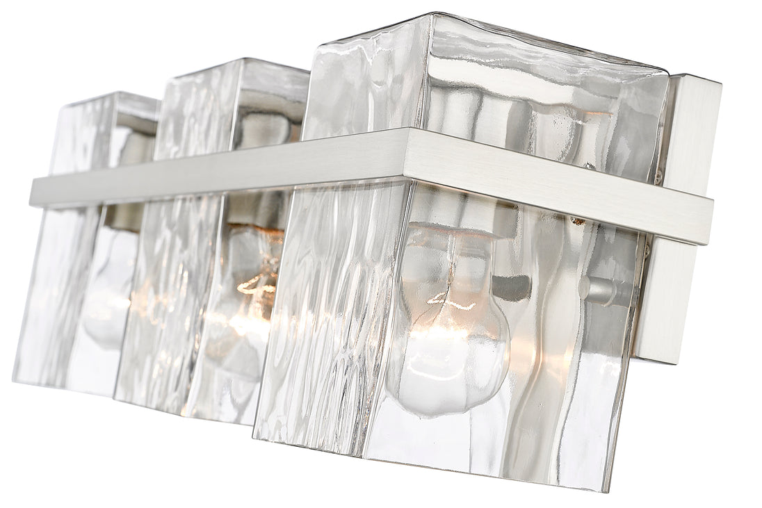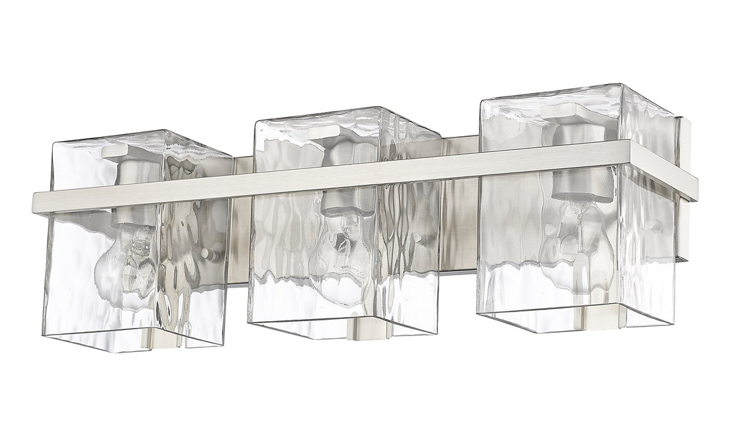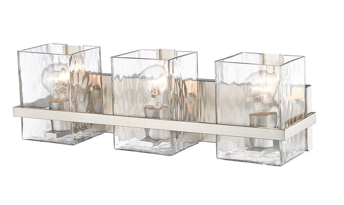 Coming in an alluring blend of versatile style and practical lighting, this three-light vanity with clear glass shades is ready to illuminate your bathroom. The fixture's steel construction is finished in a beautiful brushed nickel, giving it an inviting look that blends with your space.