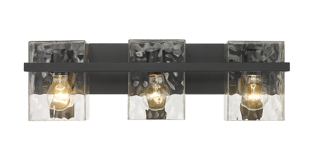 Coming in an alluring blend of versatile style and practical lighting, this three-light vanity with clear glass shades is ready to illuminate your bathroom. The fixture's steel construction is finished in a beautiful matte black, giving it an inviting look that blends with your space.