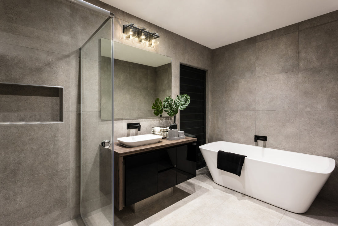 The Bennington Collection of bath fixtures highlights its handmade glass with a distinctive metal cuff for a unique artisanal appearance. A choice of rich finishes – Modern Gold, Brushed Nickel, Matte Black, and Chrome – helps set the look apart.