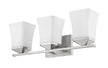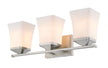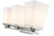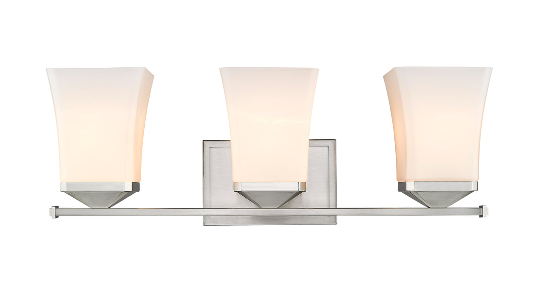 Versatile and stylish, this three-light vanity fixture comes in a brushed nickel finish for an eye-catching display. This piece is made from steel with opal etched glass shades that boast a lovely ripple texture.