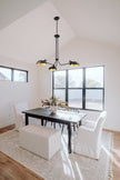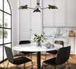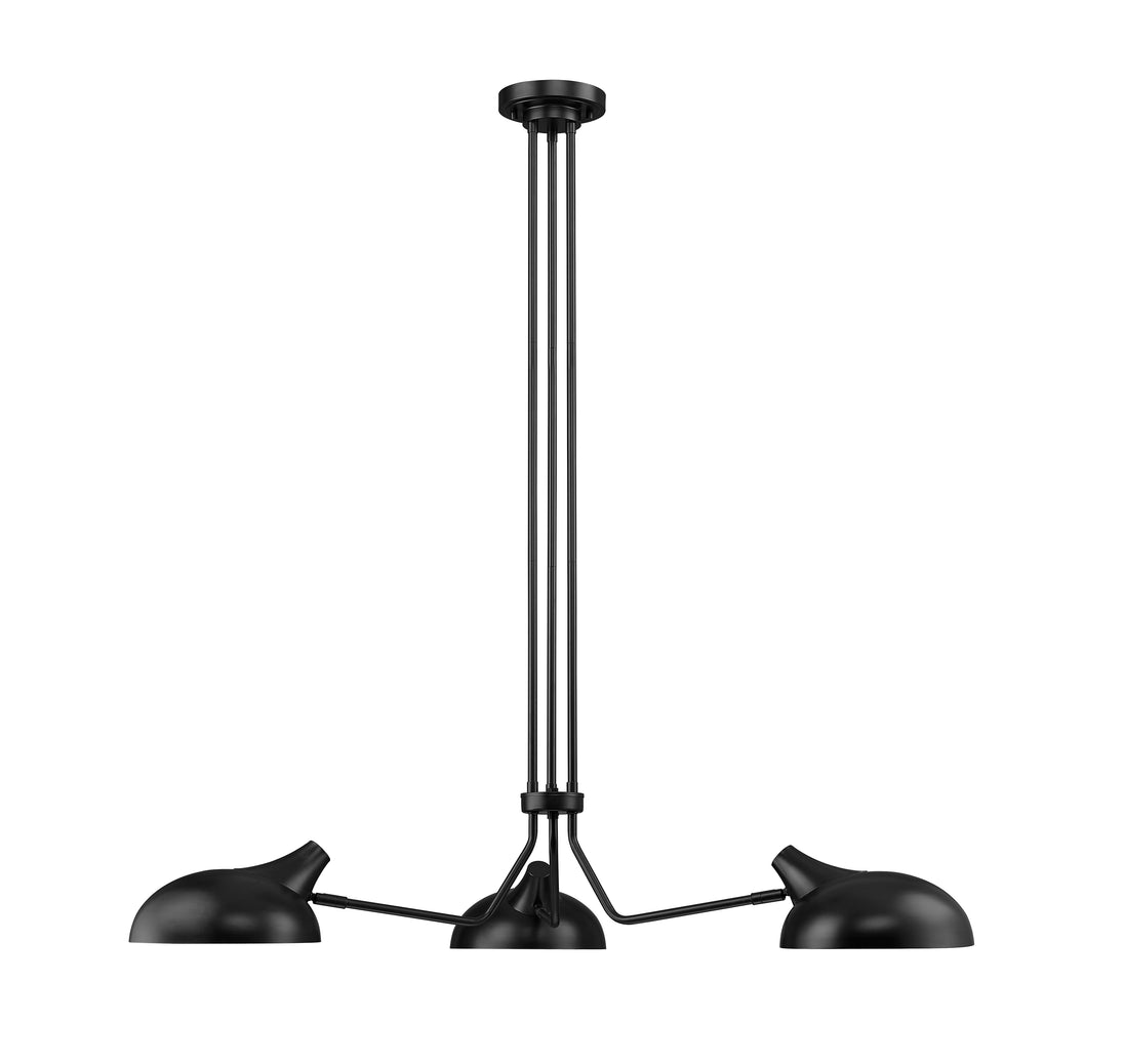 Choose a playful personality to infuse artful charm into lighting with a flexible Mid-Century Modern inspired three-light pendant light. This light from the Bellamy collection delivers on a retro motif with a whimsical angled design positioning black steel shades and rods that spread out ambient and accent illumination over a kitchen island or entertaining space. Lush gold finishes in the shades’ interiors add a dose of glam to a simple yet stylish light.