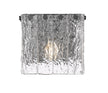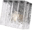 Round black finish steel framing and bolt heads create contrast for the icy cool of this modern one-light wall sconce. A distinctive addition to your living space or vanity, it boasts a rich, refined look perfectly enhanced with clean, square lines and vertical panels of textured clear glass that evoke melting glass. From the Glacier collection, it's a superb choice in a contemporary or architectural home.