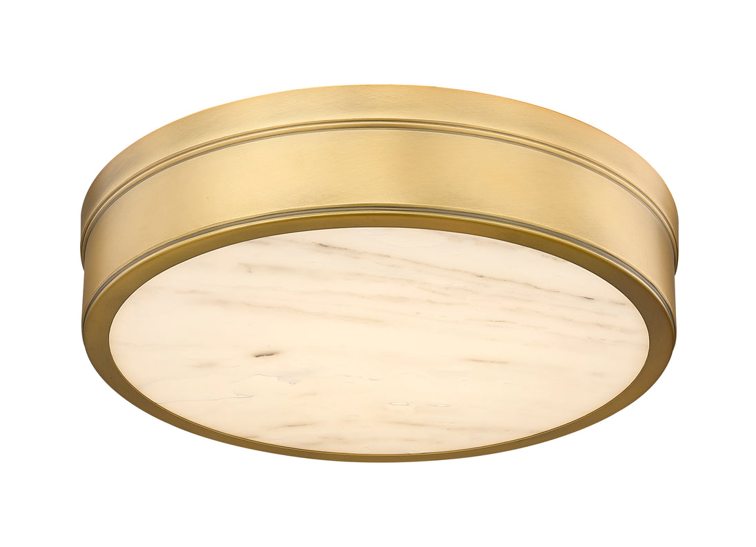 Just a bit of retro attitude softens the fresh modern look of this flush mount ceiling light from the Anders collection, a stylish fixture that adapts to modern and transitional kitchens, living areas, and dining rooms. Clean design elements gleam with a circular rubbed brass finish steel frame and canopy hugging a translucent alabaster diffuser that creates glowing light effects. This fixture’s banded metal design invokes an updated dose of industrial chic.