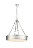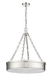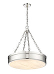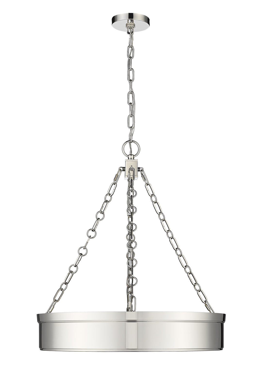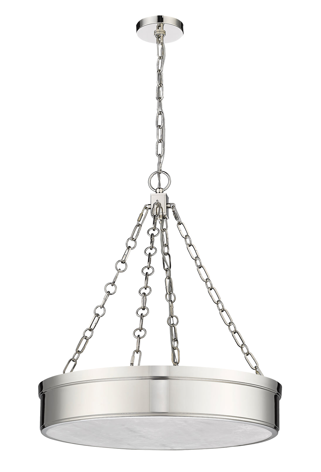 Versatile in design, this three-light LED pendant light suits décor schemes from industrial to modern and adds a sleek minimalist look. A ring design crafts simplicity in a fixture from the Anders collection, featuring a pleasing polished nickel finish steel circular frame suspended from cable chains reinforcing a symmetrical aesthetic. With a translucent alabaster diffuser, soft ambient lighting adds a warm glow to kitchens, living areas, and entryways.