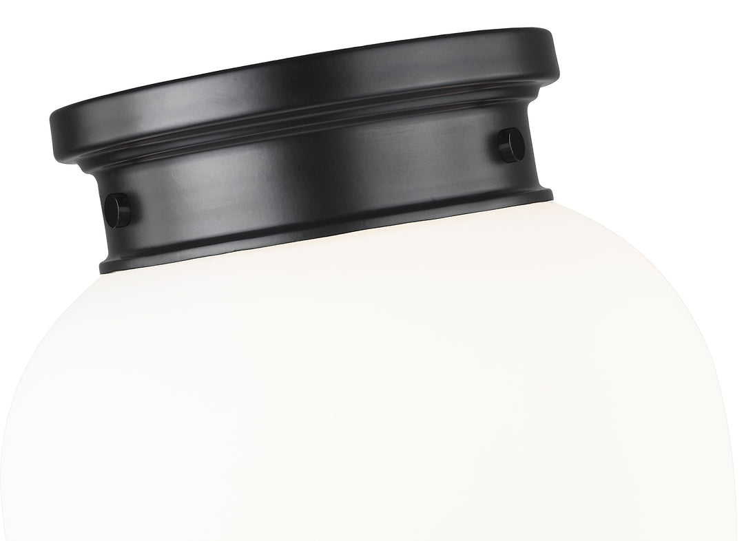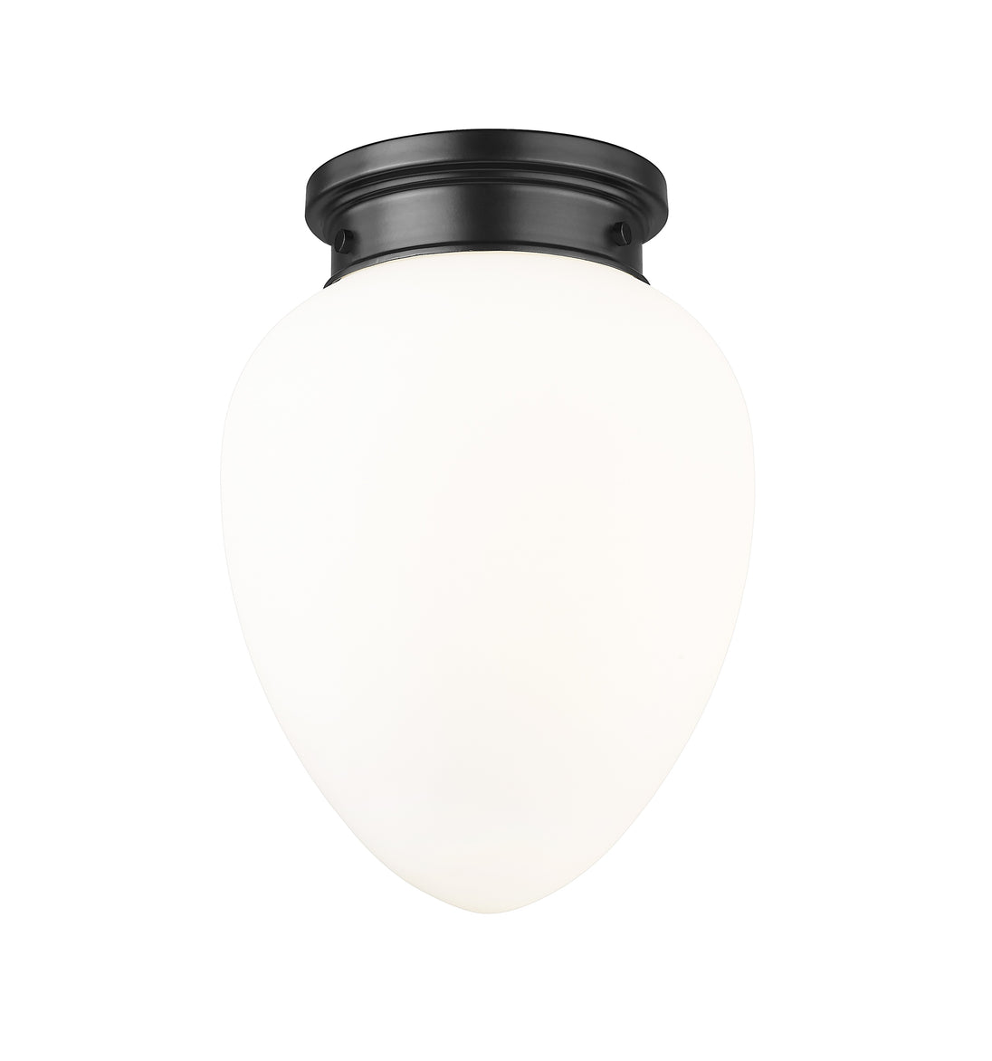 Harness the vintage charm of schoolhouse glass and a chic silhouette in this modern one-light flush mount ceiling light. A delicately rounded, teardrop-style glass shade is crafted in etched opal glass, delivering timeless elegance that brims with versatility, complementing in casual and more formal living spaces. A matte black finish is crisp and elegant, complementing surrounding decor with ease.