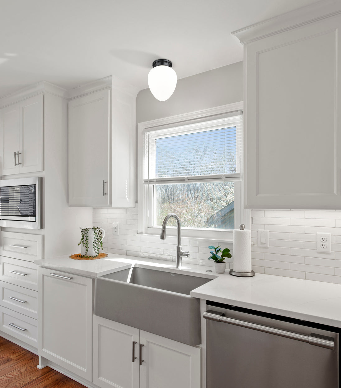 In a nod to the timeless appeal of Schoolhouse lighting, the Gideon family offers refined simplicity for ceiling-mount and pendant installations. The matte opal glass shade is artisanal crafted to provide an authentic vintage look. Available in two sizes (9.75” wide x 13.5” high and 12.25” wide x 15” high) and the following finishes: Matte Black, Brushed Nickel, Gloss White, Modern Gold.