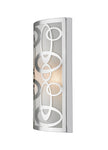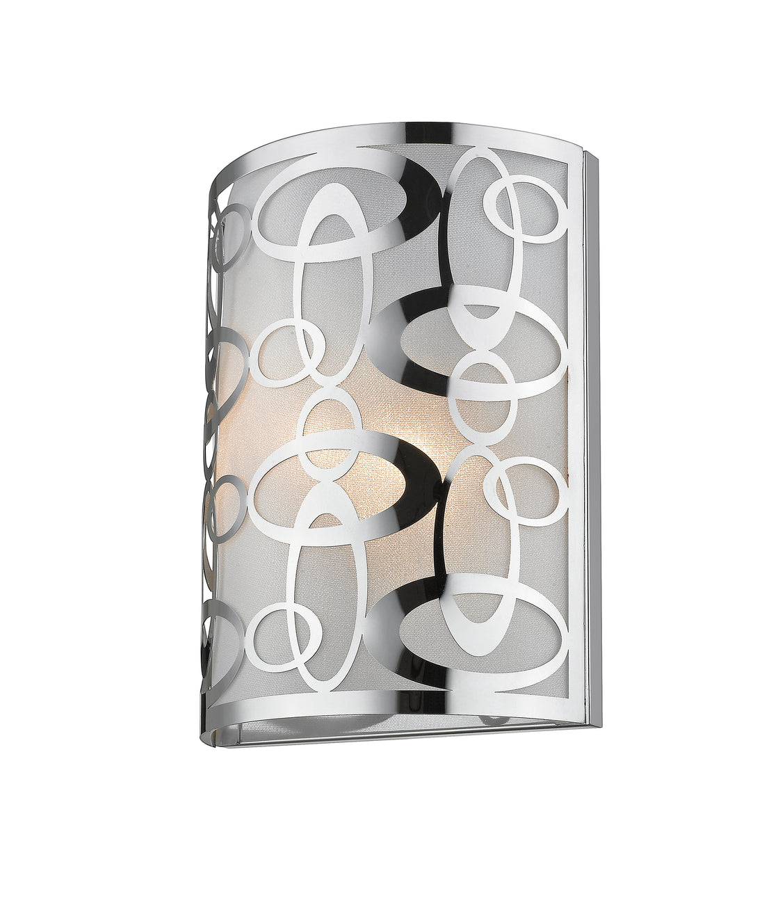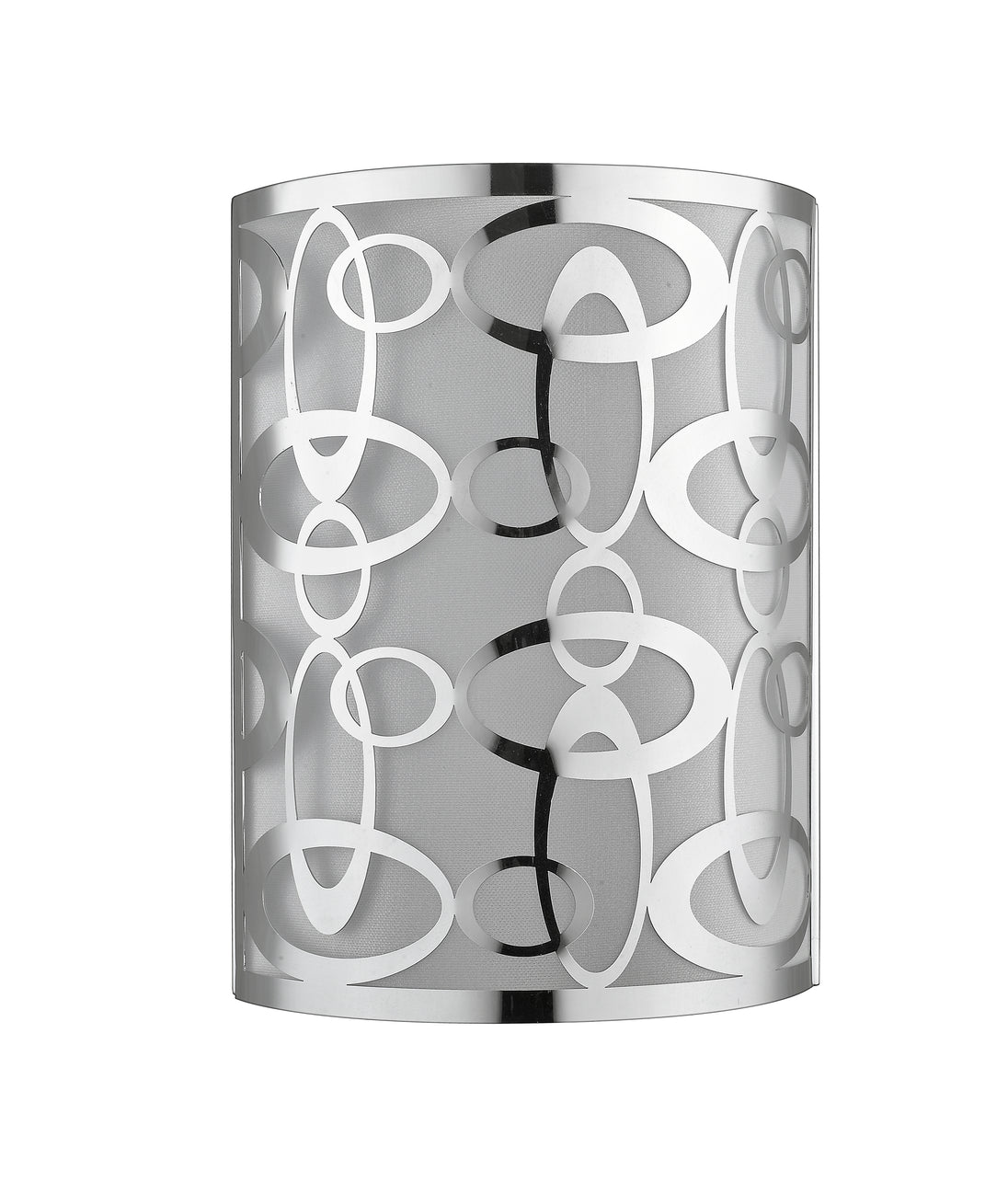 Embellish a metropolitan décor scheme with spot lighting designed to impress. Artistic and ethereal elliptical cutout shapes float on a shiny chrome finish frame, while a soft organza shade ties up the tasteful ambiance of this two-light wall sconce.